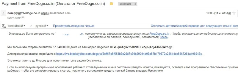 17. Поддержка так и не ответила , но доги прибежали на кошелёк - возможно и у крана был какой то глюк , ибо на почту повторно пришло уведомление о выводе .
