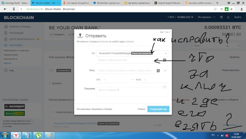 А в импортированном адресе, нужно вести этот самый личный ключ!!!! чтобы снять с него деньги!